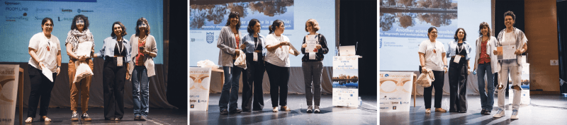 Arriba: Microrelatos que concursaron en el I Concurso de Microrelatos "Científicas que cuentan" . Abajo: Entrega de premios a las ganadoras, otorgados durante el III SIBECOL & XVII AEET Meeting, 2-6 junio de 2025.